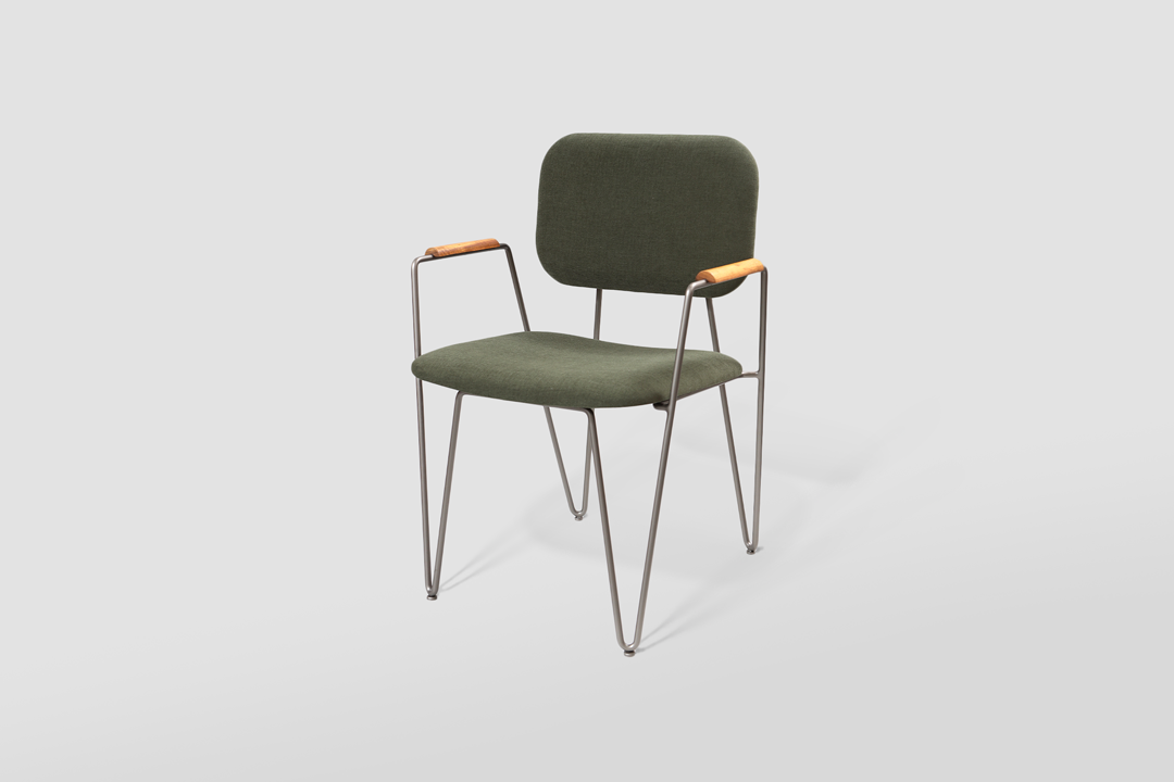 A estrutura da Cadeira Bruna com braços é feita em aço carbono maciço com pintura anticorrosiva em várias opções de tonalidades e estofada em diversas opções de tecidos exclusivos.