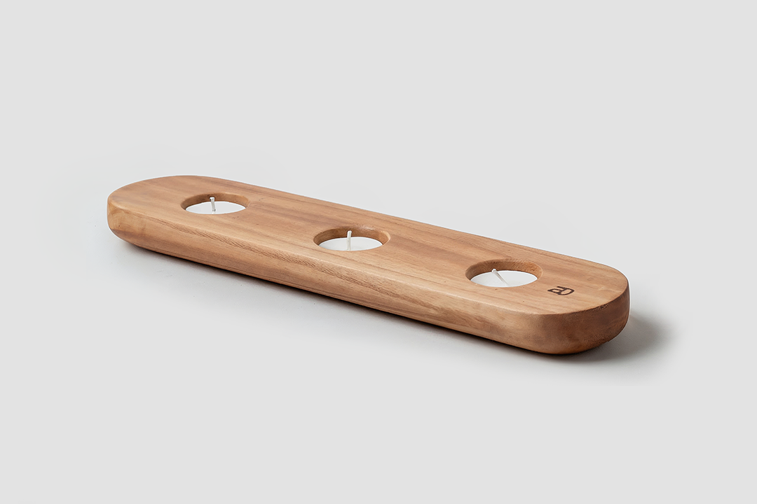 A importância de dar o máximo aproveitamento aos materiais dando sustentabilidade para todo o ciclo produtivo sempre esteve muito presente nas criações de Alessandra Delgado. Uma grande vontade de aproveitar totalmente os resíduos provenientes da madeira de reflorestamento Cinamomo utilizada na fabricação de móveis de sua autoria como mesas de jantar, aparadores, bancos e mesas de centro. Assim surgiu o Porta Velas Jangada.