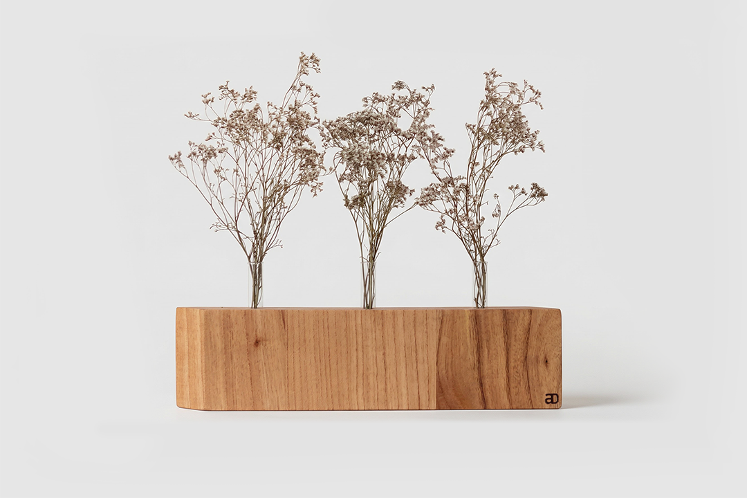 .O Vaso Chanfros longo apresenta, como todas as peças da coleção, acabamento de aspecto muito natural com verniz totalmente fosco que valoriza realmente a madeira como ela é, a delicadeza do seu desenho e veios naturais.